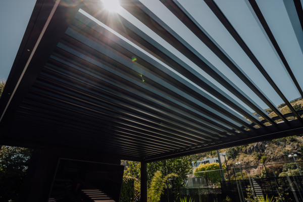 The brief was to create a space that he and his family could use as an extension of their indoor living, and that could be utilised year-round. The solution was a bespoke “outdoor room”, consisting of a Juralco freestanding SunPivot® louvre roof along with side protection provided by a Solarzip® outdoor blind and Glaslide® glass sliding panel doors, which give him and his family the ability to use this space whatever the weather.
